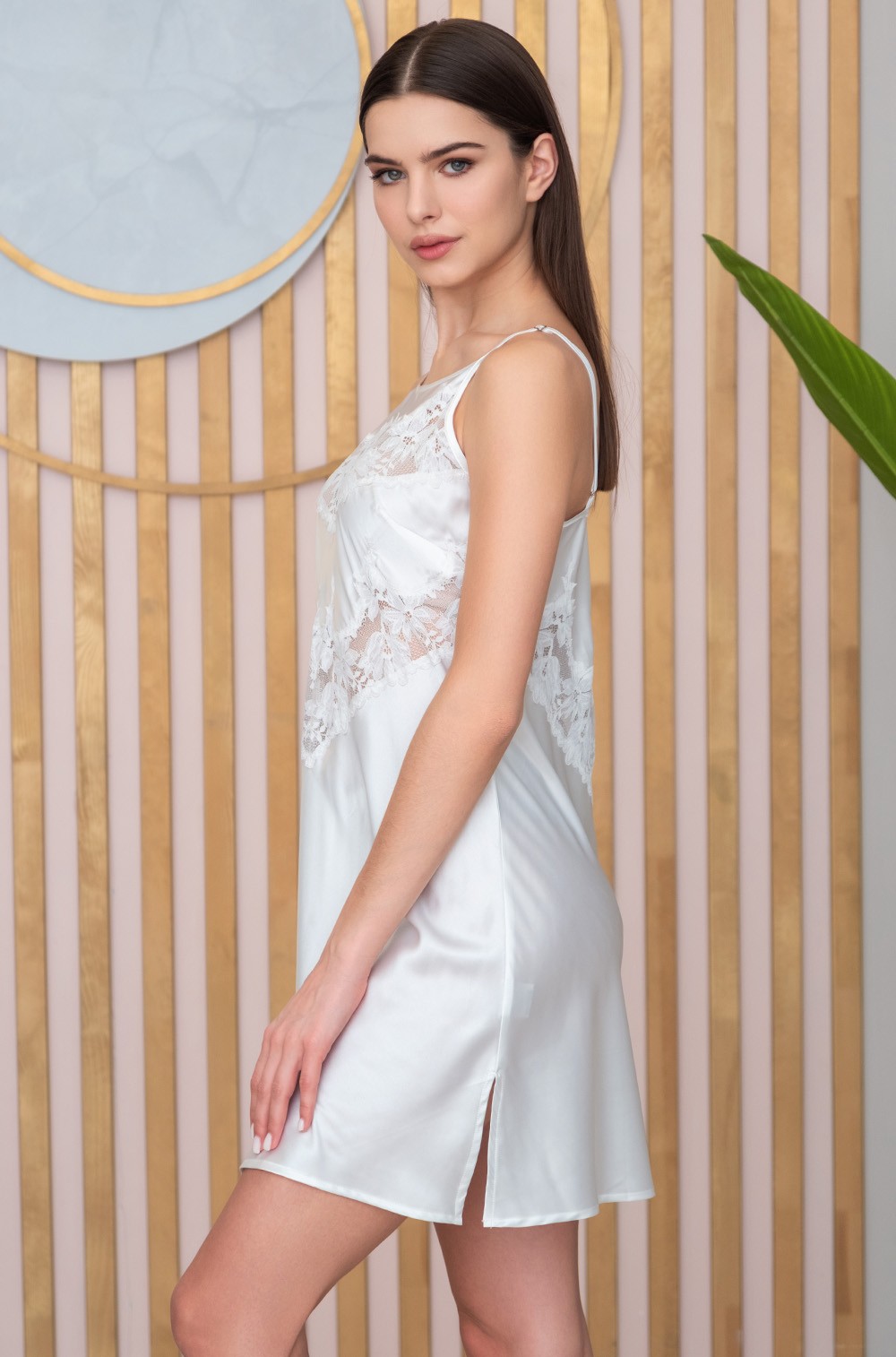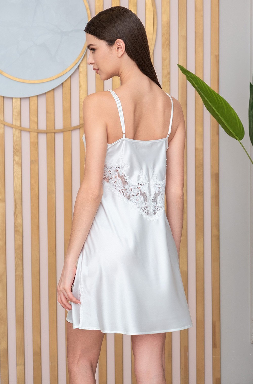 Тип Сорочка короткая Цвет Белый Модель Сорочка на узкой лямке Материал Смесовый шёлк