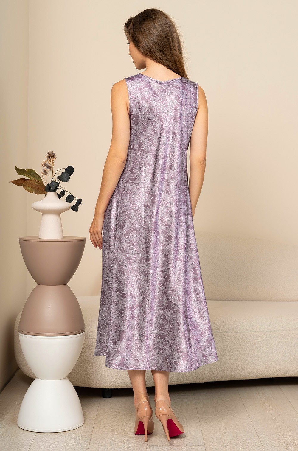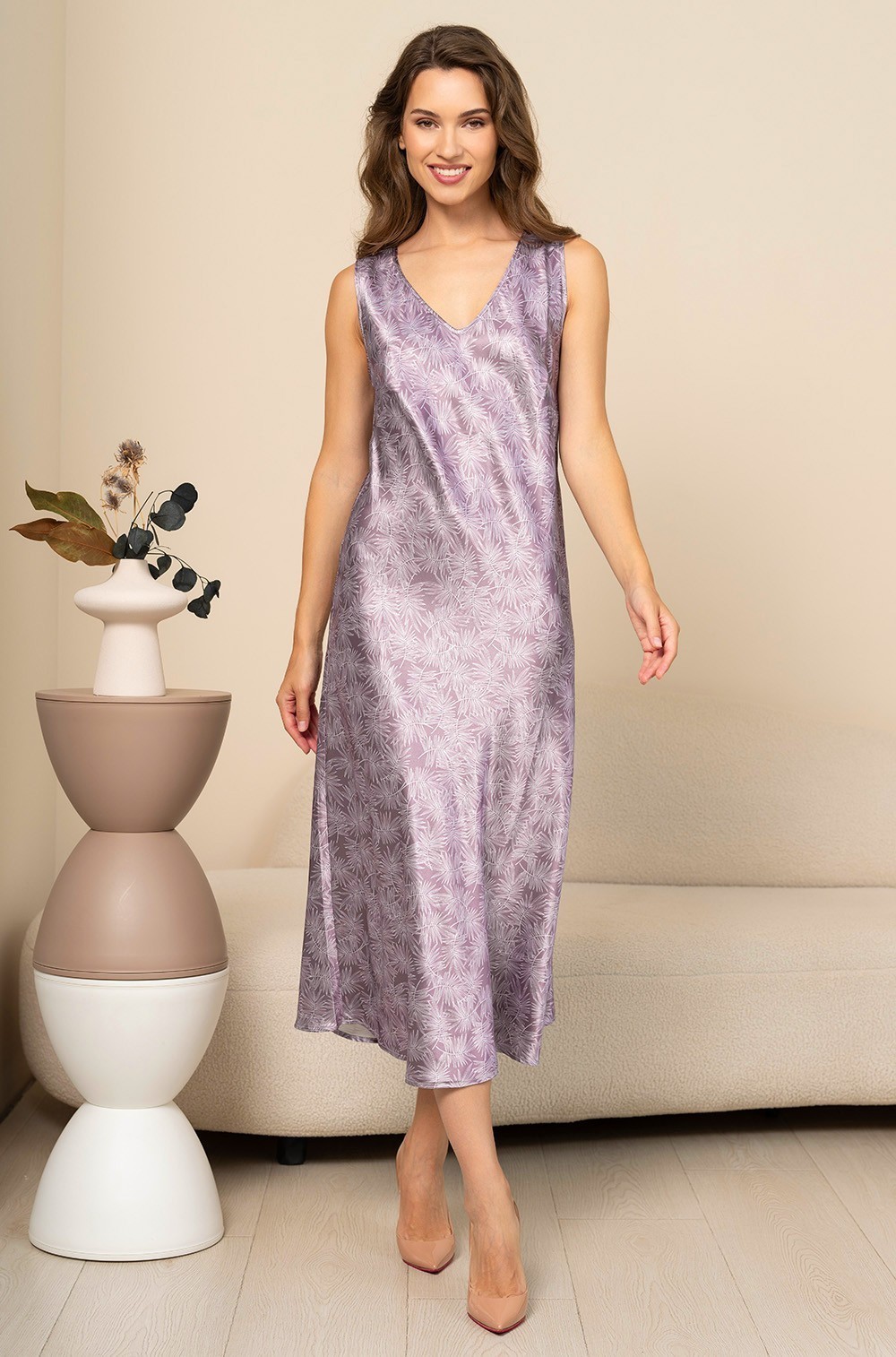 Тип Сорочка длинная Цвет Сиреневый Модель Сорочка на широкой лямке Материал Смесовый шёлк