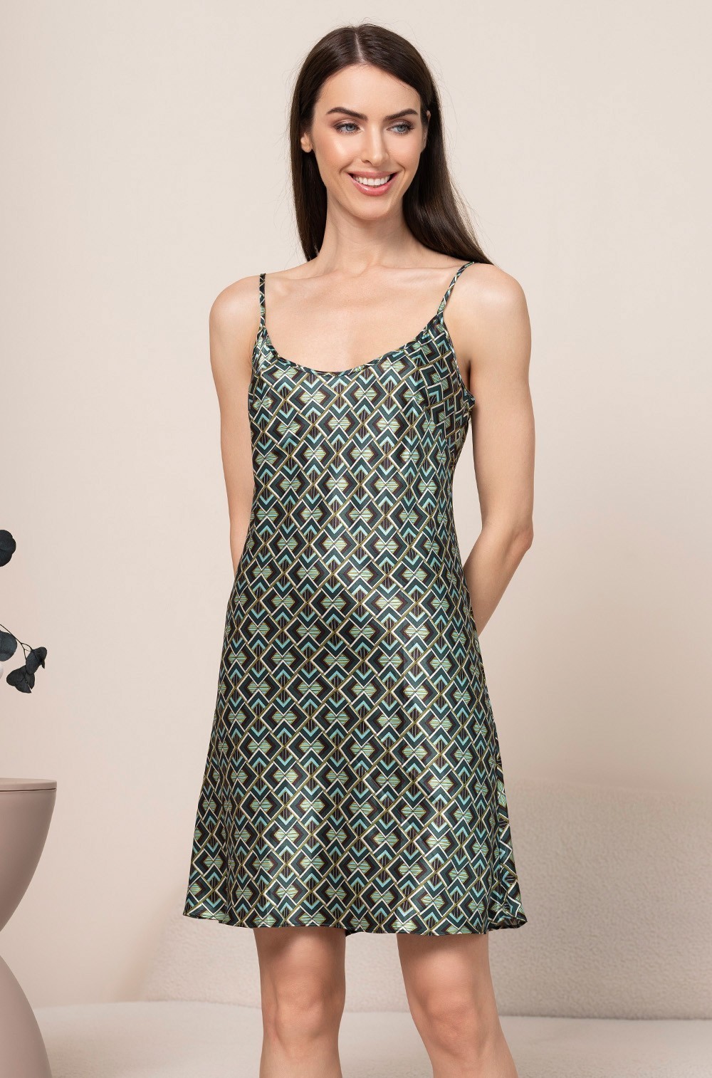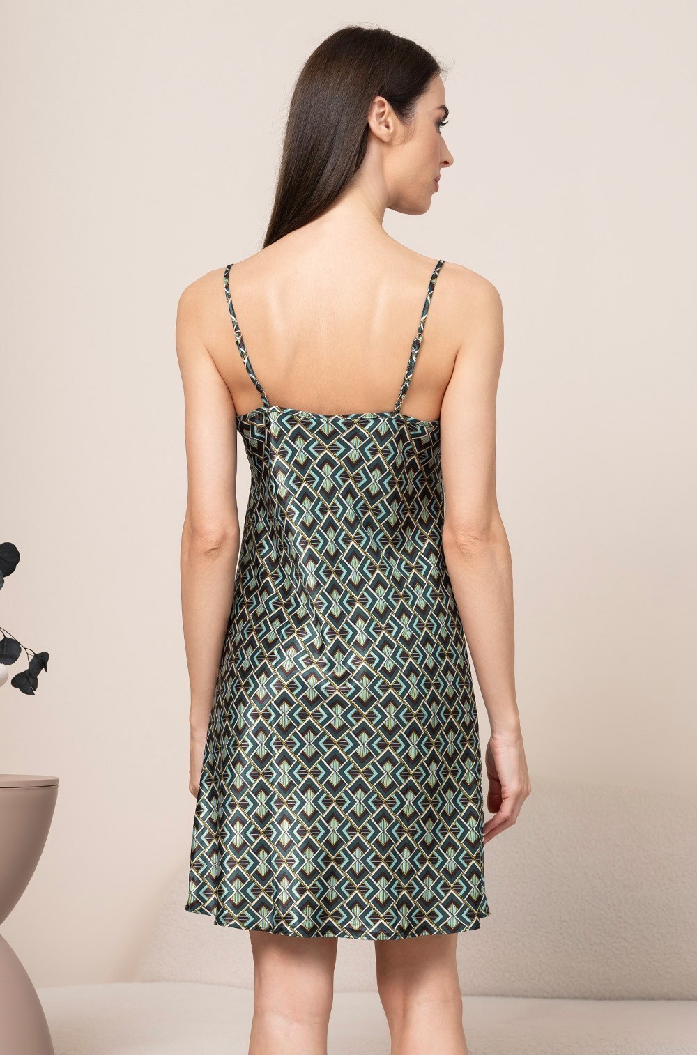 Тип Сорочка короткая Цвет Зелёный Модель Сорочка на узкой лямке Материал Смесовый шёлк