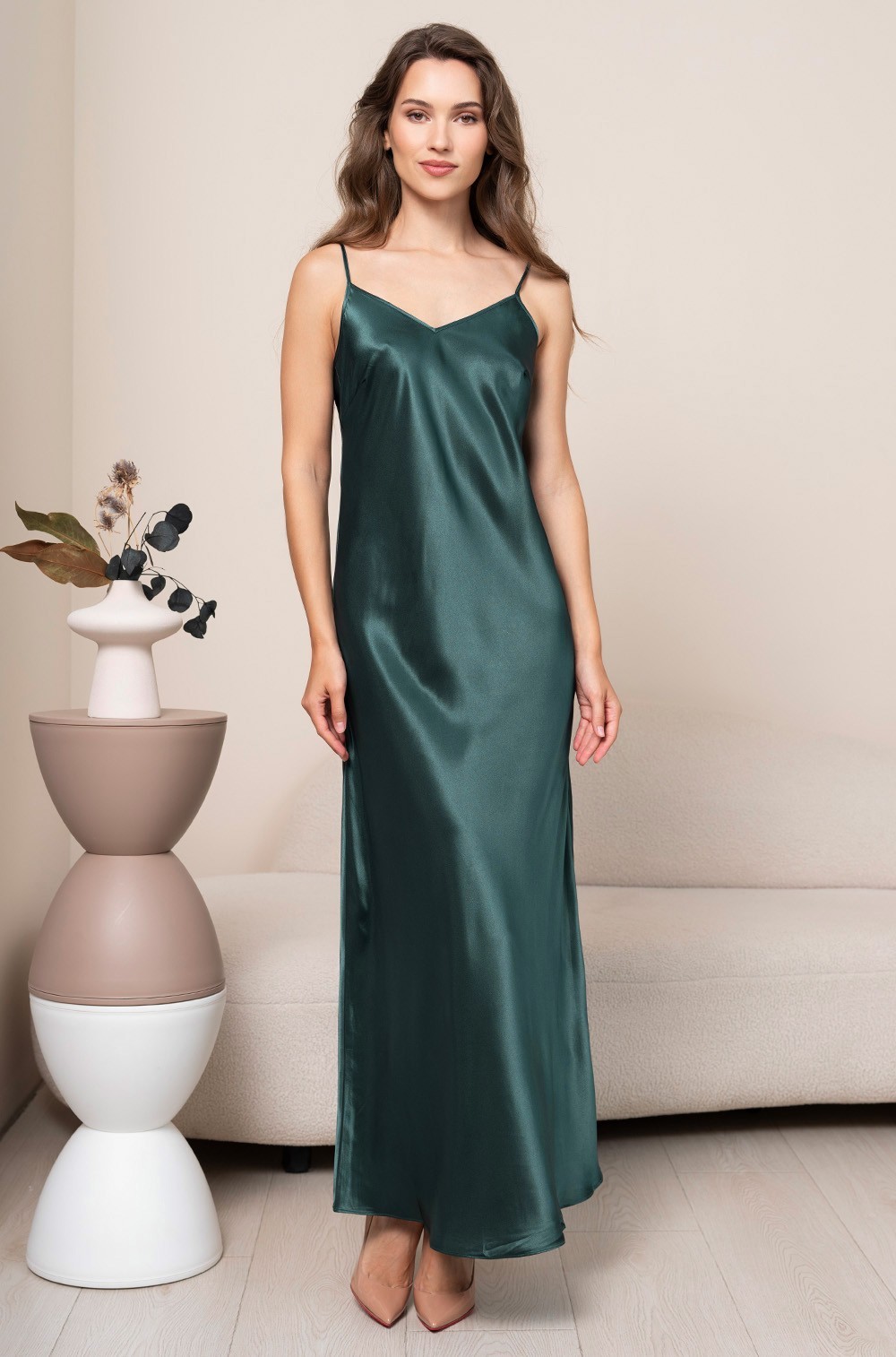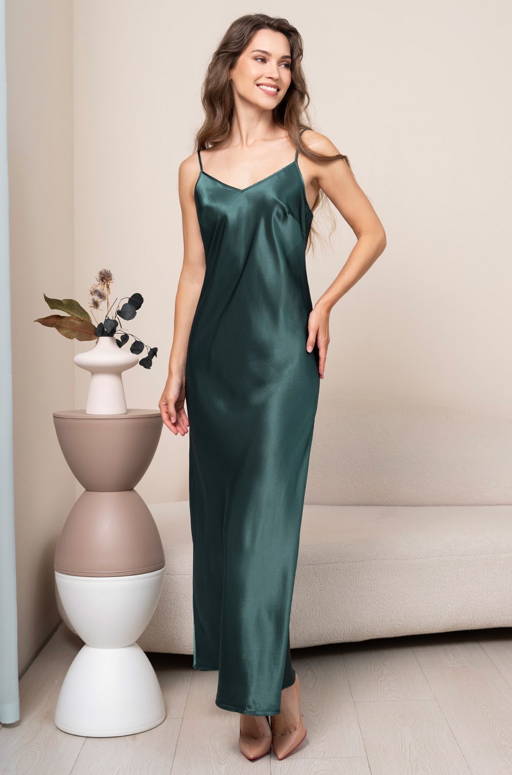Тип Сорочка длинная Цвет Зелёный Модель Сорочка на узкой лямке Материал Смесовый шёлк