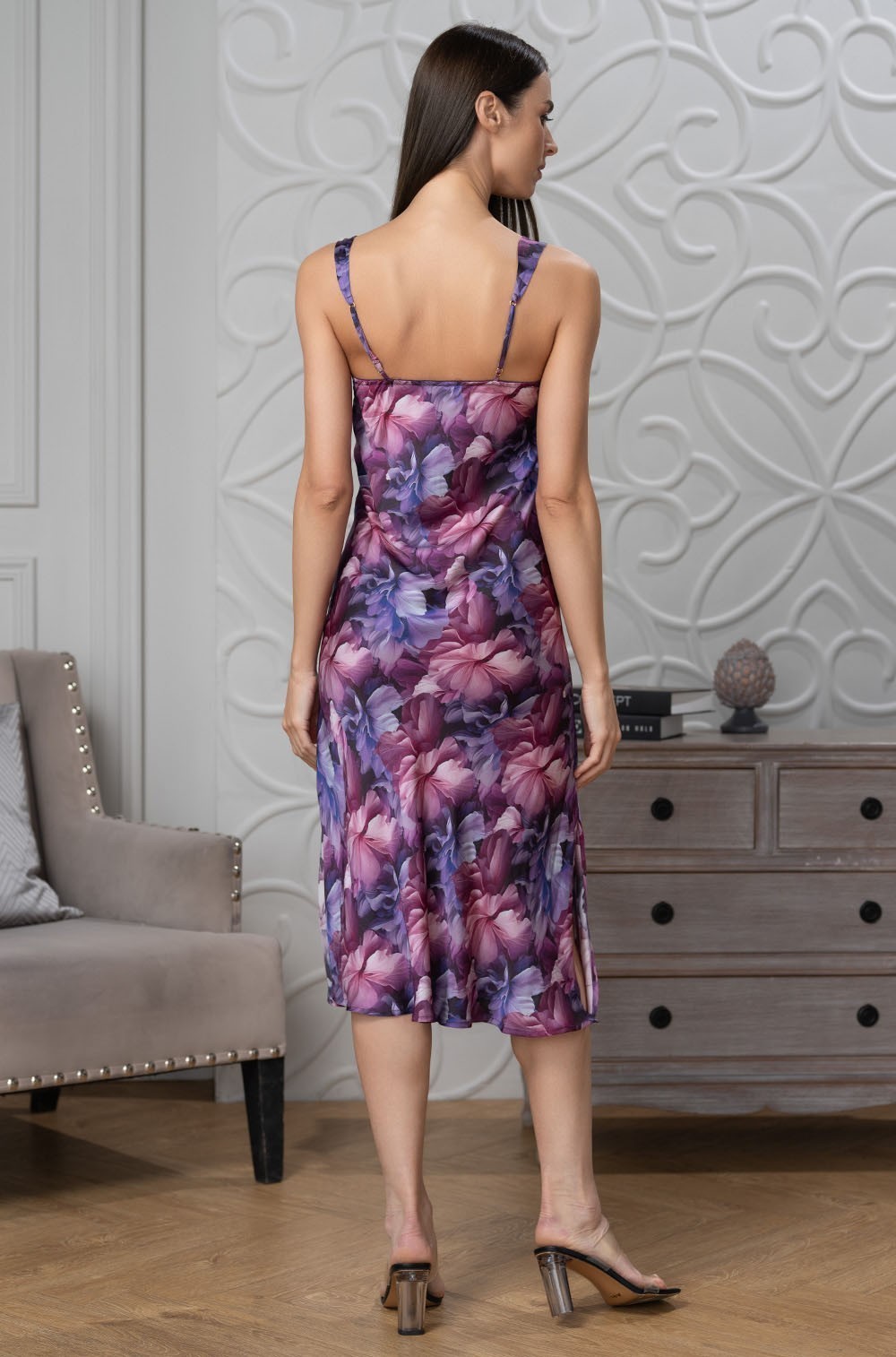 Сорочка Mia-Amore Kameya 4451. Элегантная сорочка средней длины с изящным подрезом, выполненная на широких регулируемых бретелях. Модель отличается удобством и стильным дизайном.