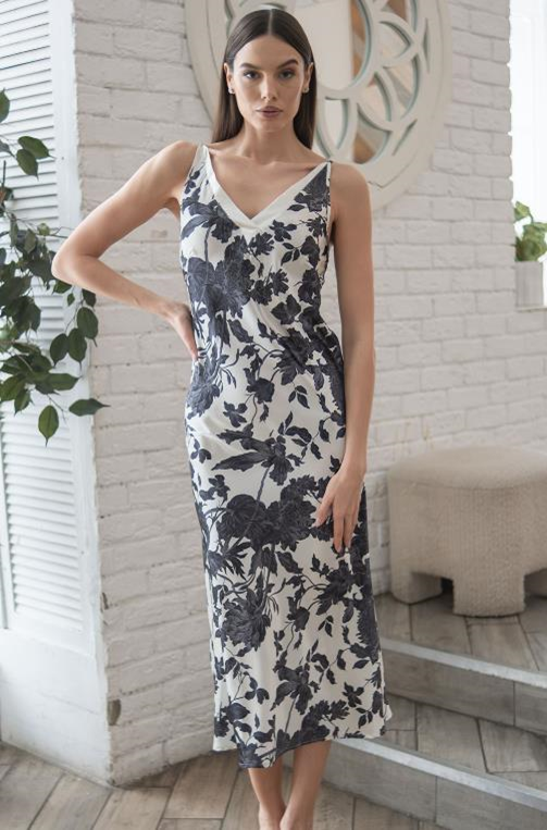 Шёлковая ночная длинная на тонких бретелях Глэдис 4115 Mia-Amore имеется в размерах: M, L. XL. 2XL. 3XL. 4XL. 5XL.