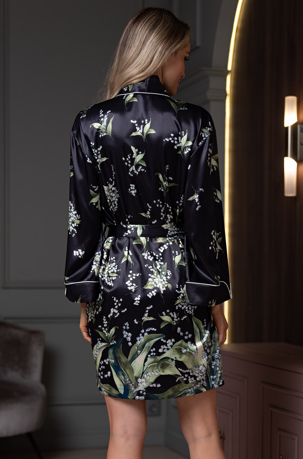 -Халат изготовлен из роскошного принтованного смесового шёлка, который обеспечивает непревзойдённый комфорт при носке: