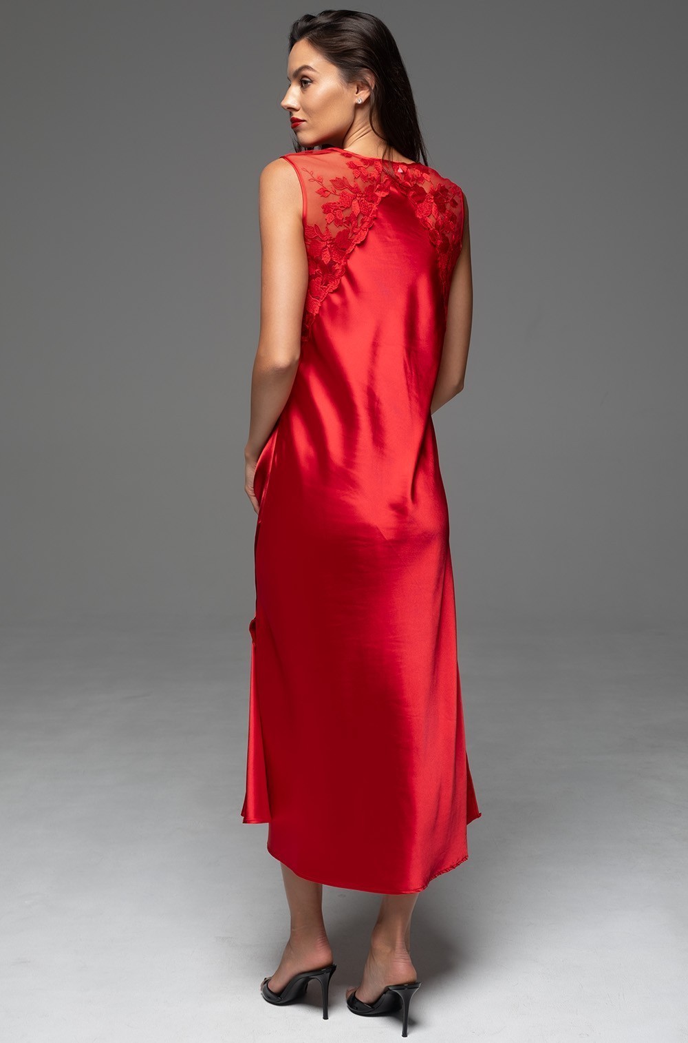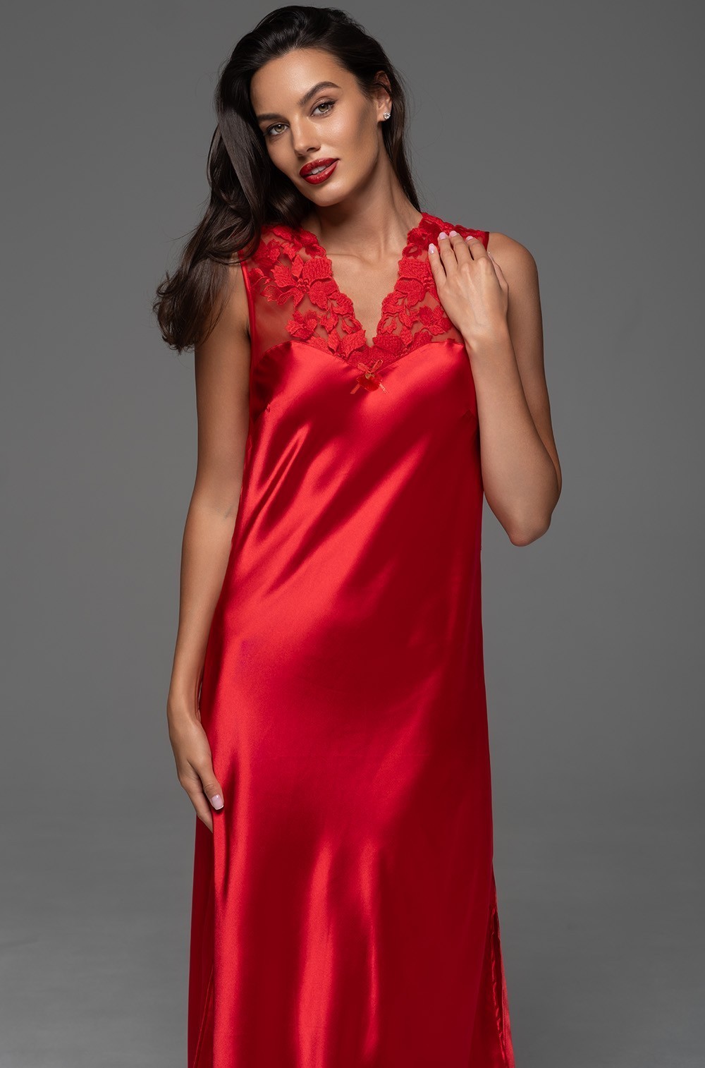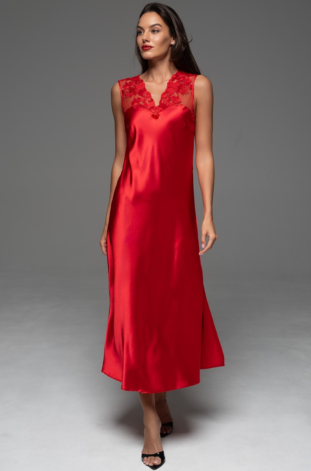 Шёлковая длинная сорочка красная с кружевом Merlot 4747 Mia-Amore имеется в размерах S. M. L. XL. 2XL. 3XL. 4XL. 5XL.