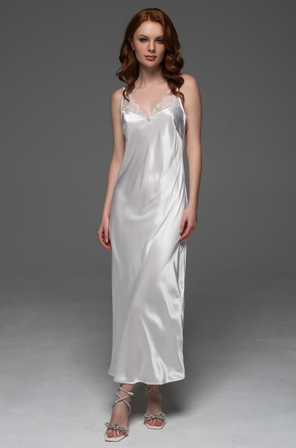 • Элегантная шёлковая сорочка ниже колен белая Аделаида 4707 Mia-Amore