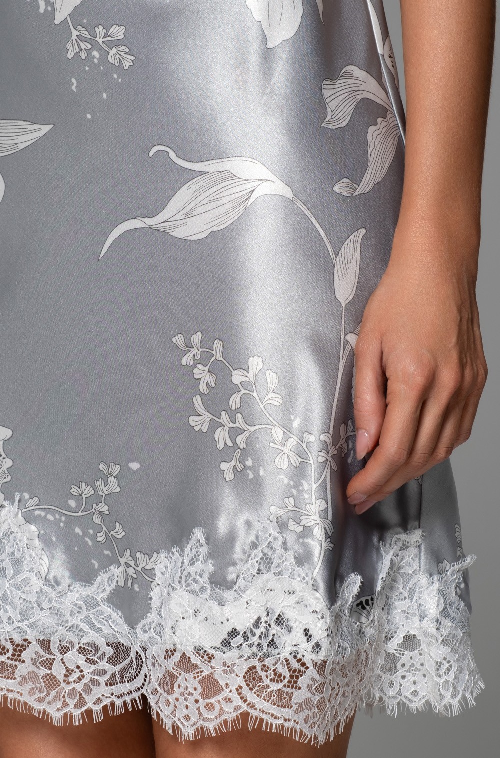 -Романтичный декор — широкое кружево по низу сорочки придаёт модели изысканный шарм, а изящный бантик в центре лифа добавляет образу игривости;