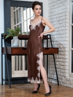 Тип Сорочка длинная Цвет Шоколадный Модель Сорочка на узкой лямке Материал Смесовый шёлк -
