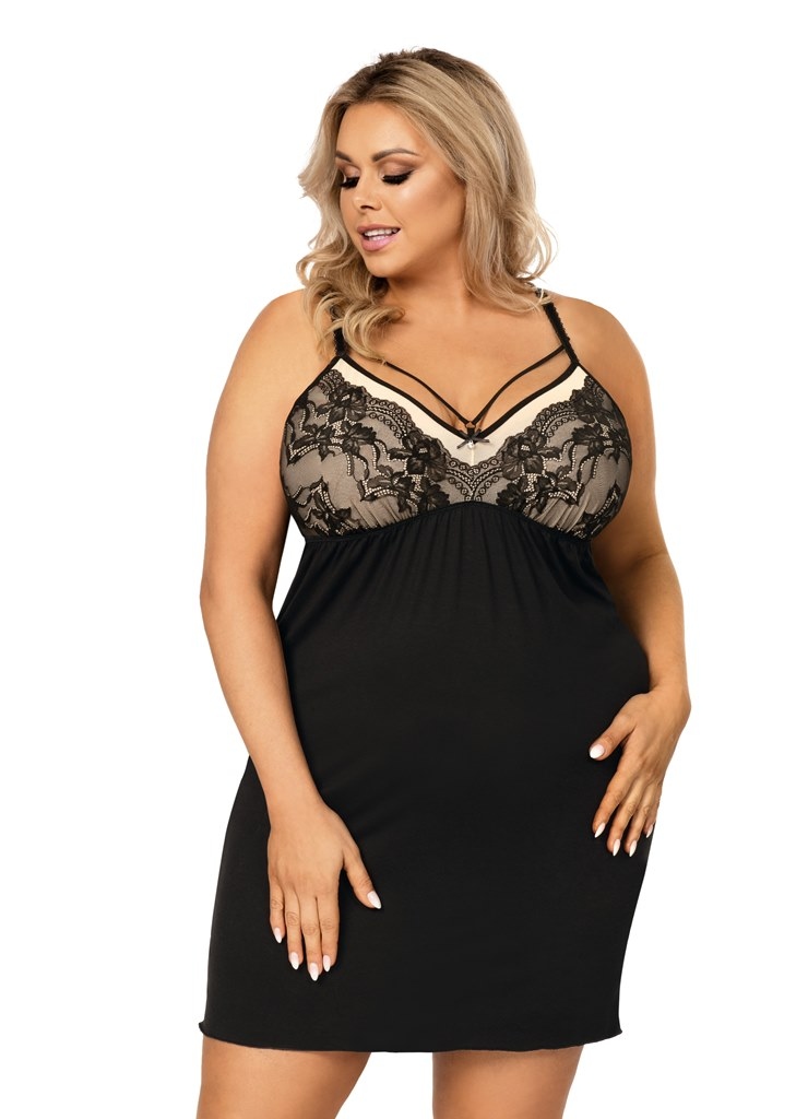 Сорочка женская SARAH II plus от европейского производителя Donna. Модель с кружевным верхом на тонких лямках. Изделие упаковано в коробку с изображением модели. На сайте указан европейский размер! К европейскому размеру +4