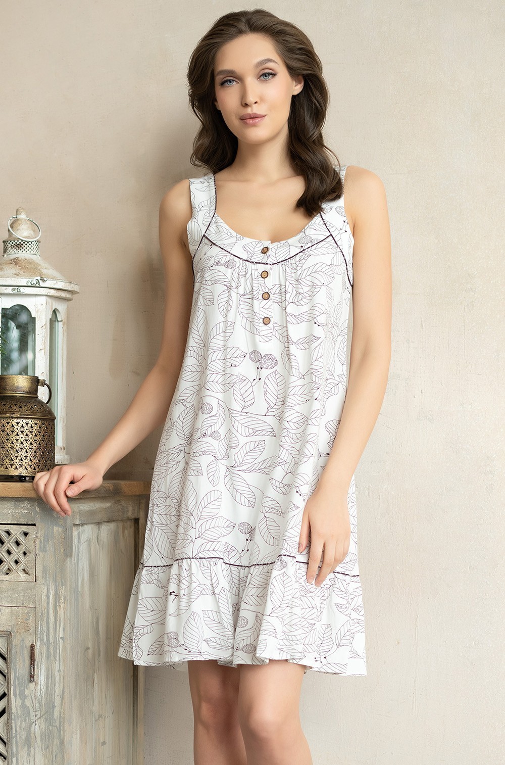 Эстетичная и привлекательная сорочка ночная женская до колен Mia-Amore с широкими и удобными плечиками выполнена из принтованной вискозы. Этот мягкий материал на ощупь напоминает шелк, он хорошо пропускает воздух и почти не ощущается на теле. Лиф декорирован застежкой с декоративными пуговицами. Горловина и низ украшены контрастным кантиком. По низу сорочки волан с лёгкой сборкой. Ночная сорочка женская подойдёт как подарок любимой девушке, жене, сестре, подруге или маме. Женская ночная сорочка не слишком длинная, но и не короткая, размеры от 42 до 54- поэтому подойдёт женщинам любого роста. Ночная сорочка женская трикотаж красиво сидит на любой фигуре, подчёркивая её достоинства. Красивая удобная домашняя одежда прекрасно подойдет для дома, отдыха, больницы и родов.