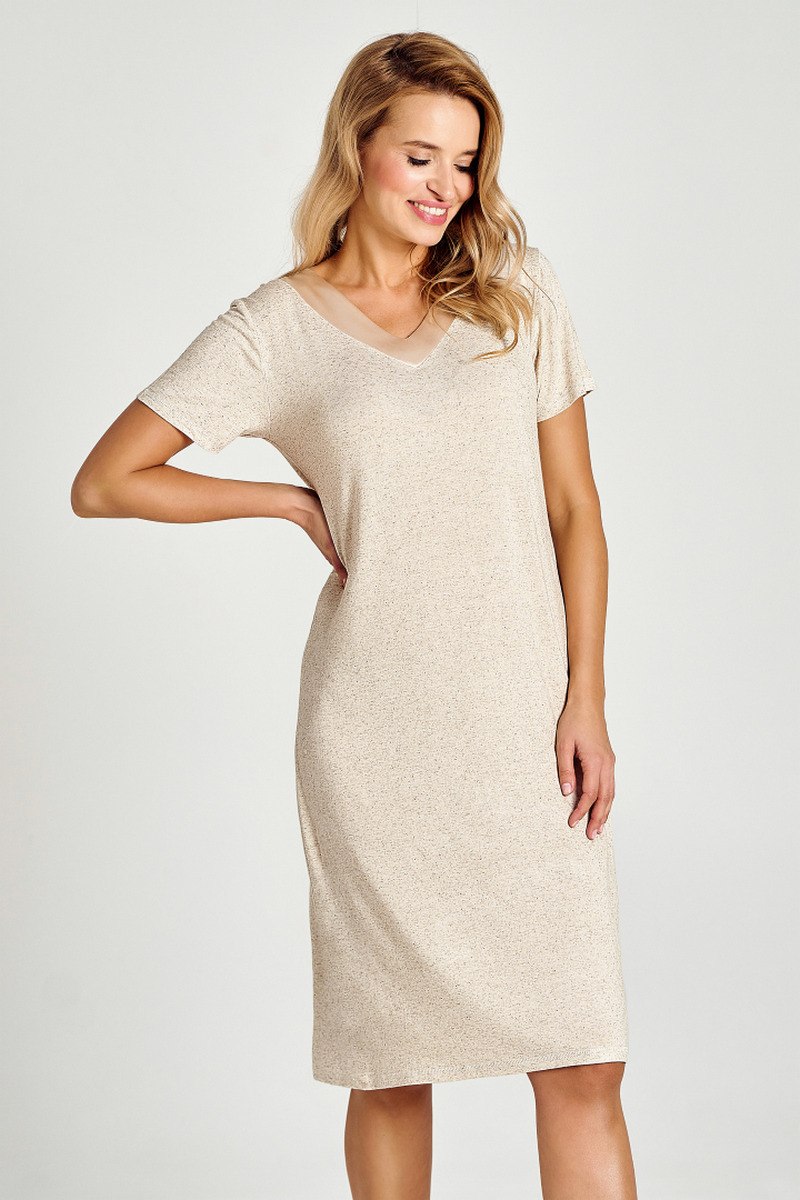 Тип Сорочка средней длины Цвет Бежевый Модель Сорочка с коротким рукавом Материал Вискоза