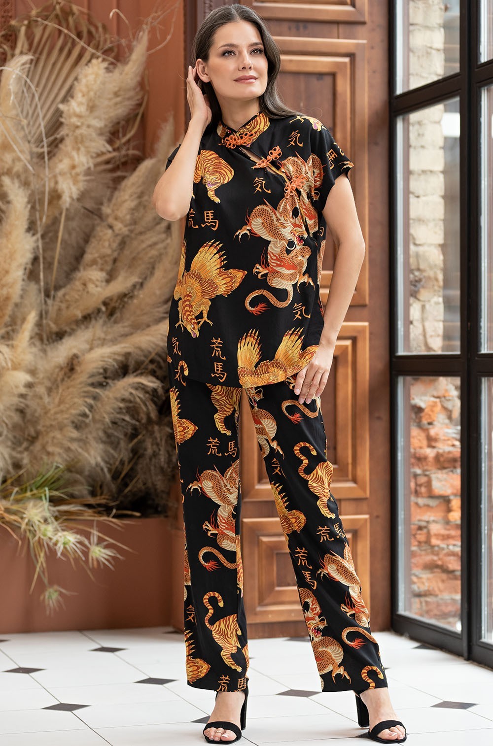 Пижама женская топ с брюками с восточным принтом Дракон 5085 Mia-Amore