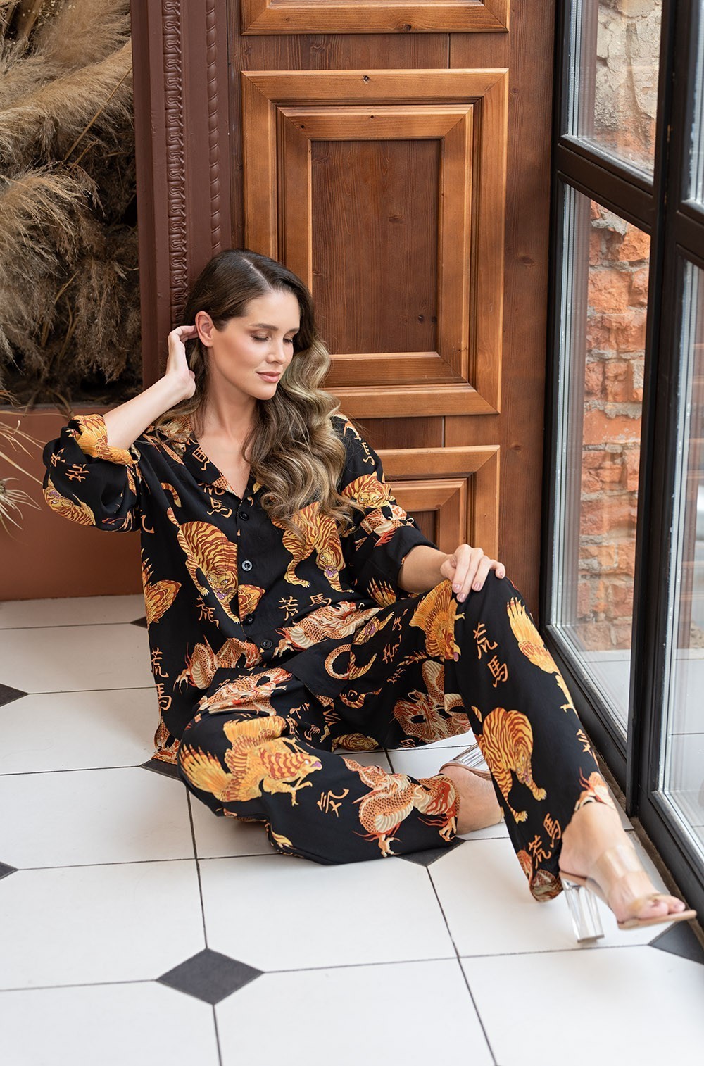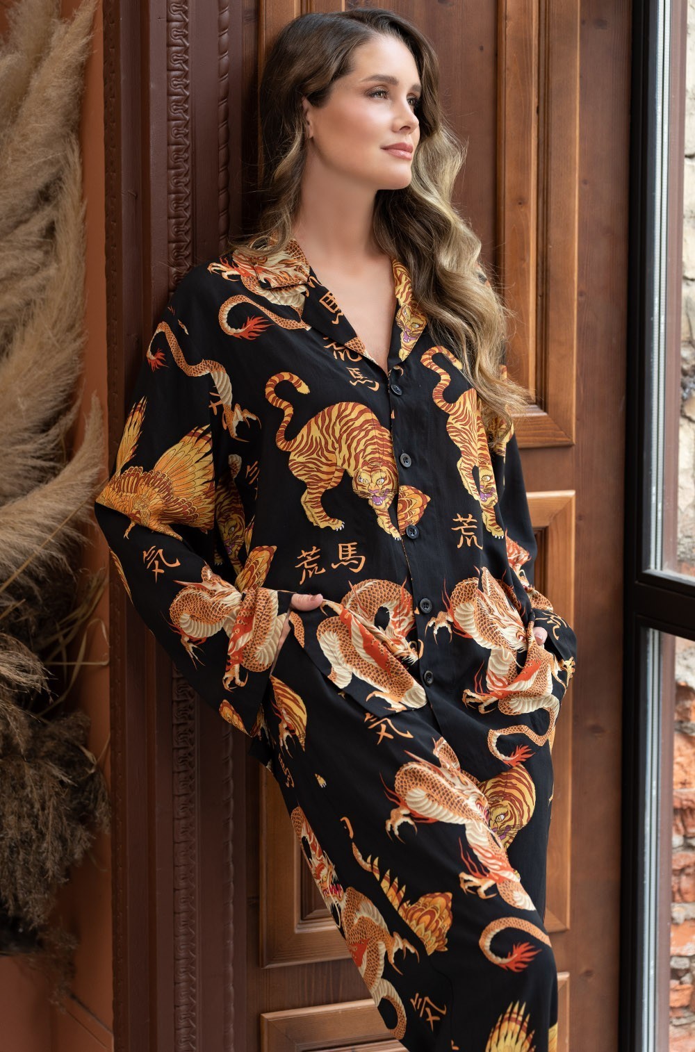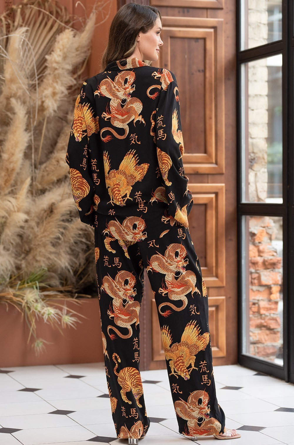 Пижама из вискозы жакет с брюками с восточным принтом Дракон 5086 Mia-Amore имеется в размерах: S.M.L.XL.2XL.3XL.4XL.5XL.