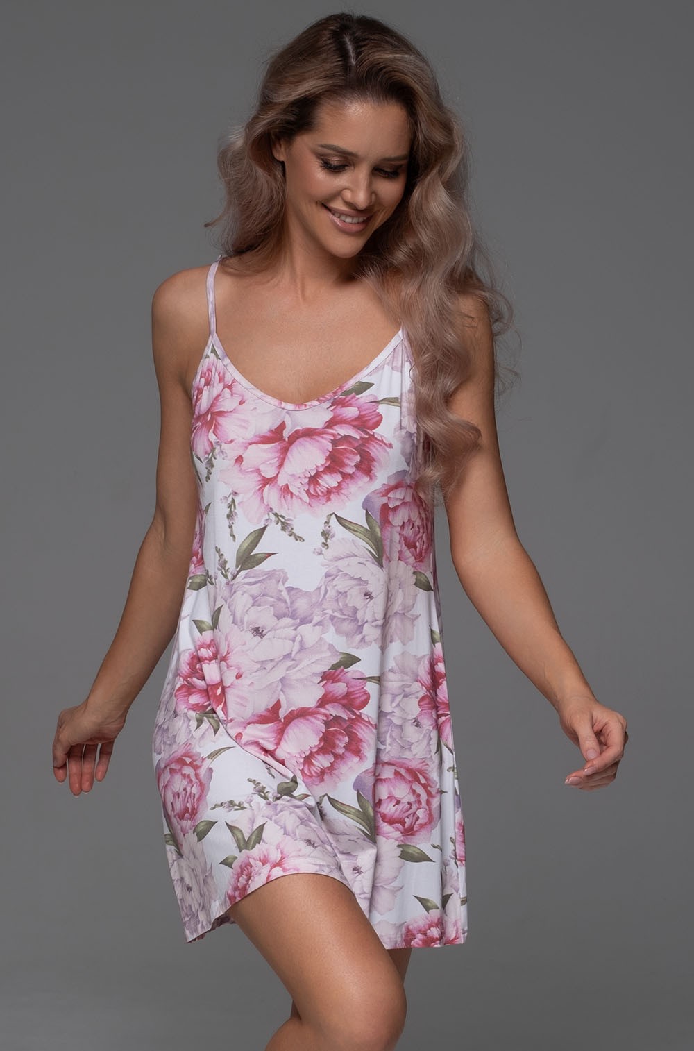 Тонкие регулируемые бретели позволяют идеально подогнать сорочку по фигуре, а принтованная вискоза (95% вискоза, 5% эластан) дарит коже невероятную мягкость и свободу движений.