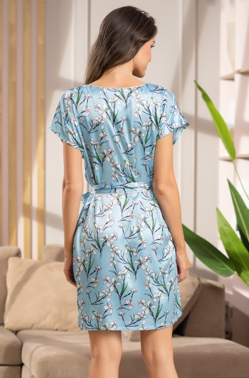 Туника домашняя женская атласная Флора FLORA 7205 голубой Mia-Amore Mia-Amore имеется в размерах: S. M. L. XL. XXL.
