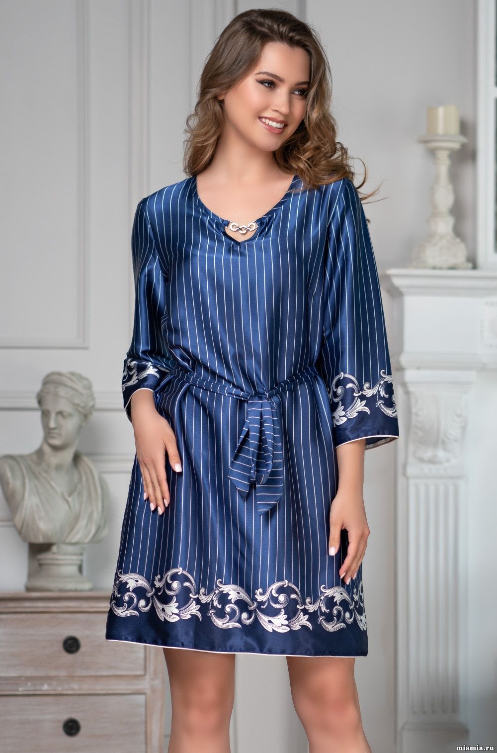 Тип Туника короткая Цвет Синий Модель Халат с рукавом 3/4 Материал Полиэстер -