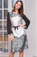 Тип Платье короткое Цвет Чёрно-белый Модель Платье с длинным рукавом Материал Смесовый шёлк