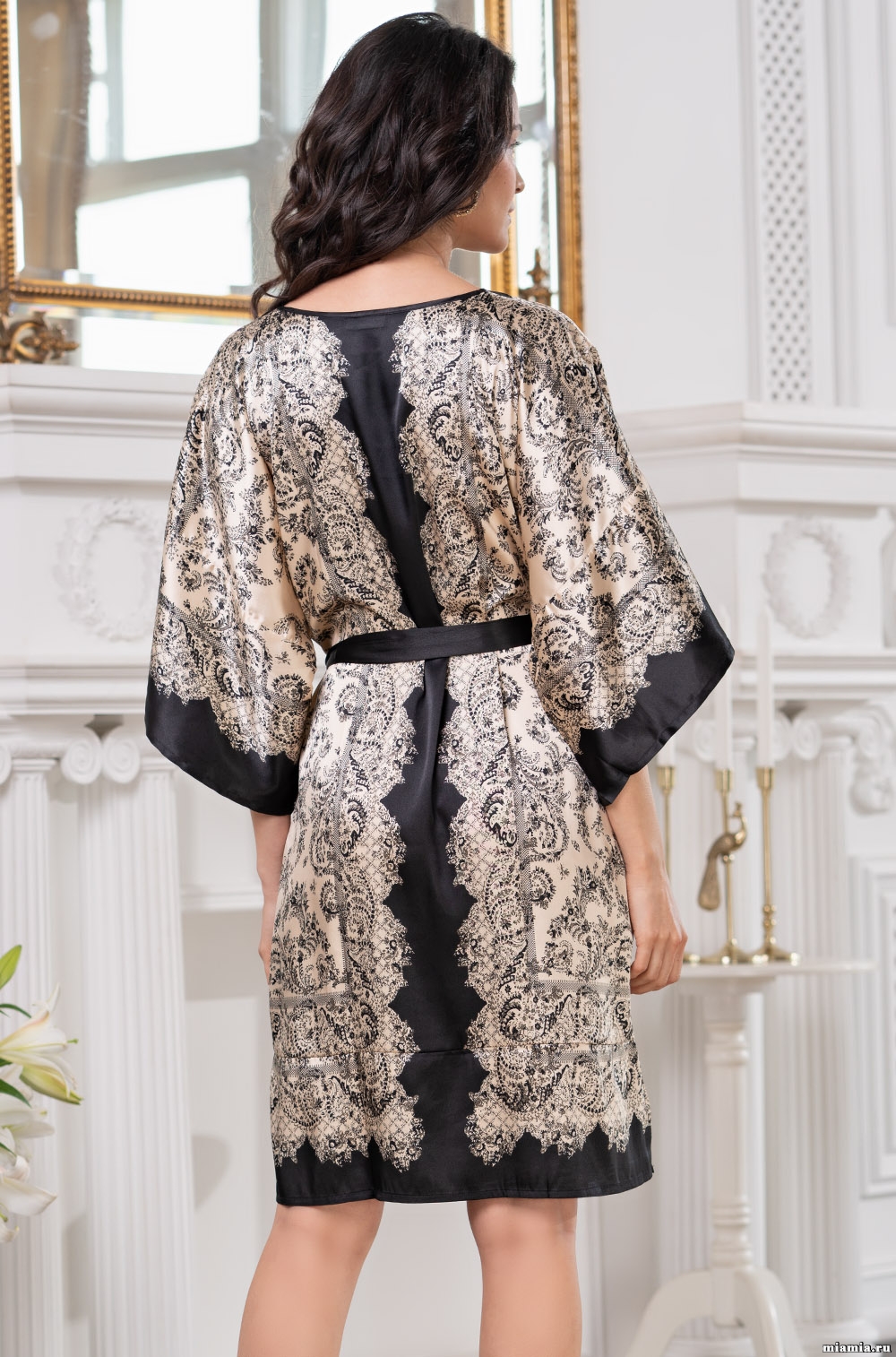 Туника Mia-Amore средней длины, свободного силуэта и с широкими рукавами, выполнена из смесового шелка с купонным принтом. По бокам расположены разрезы. В боковых швах расположены карманы. Линию талии можно подчеркнуть за счет пояса.