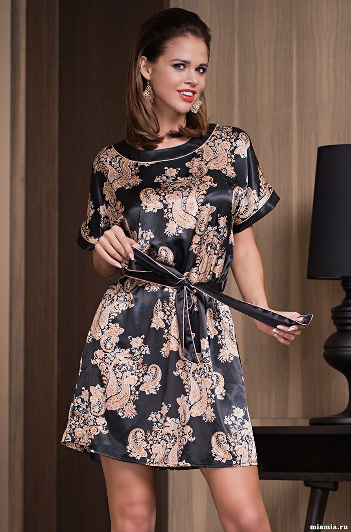 Шёлковая туника домашняя с рукавом Golden Flower 3315 Mia-Amore имеется в размерах: L, XL, XXL, 3XL, 4XL.