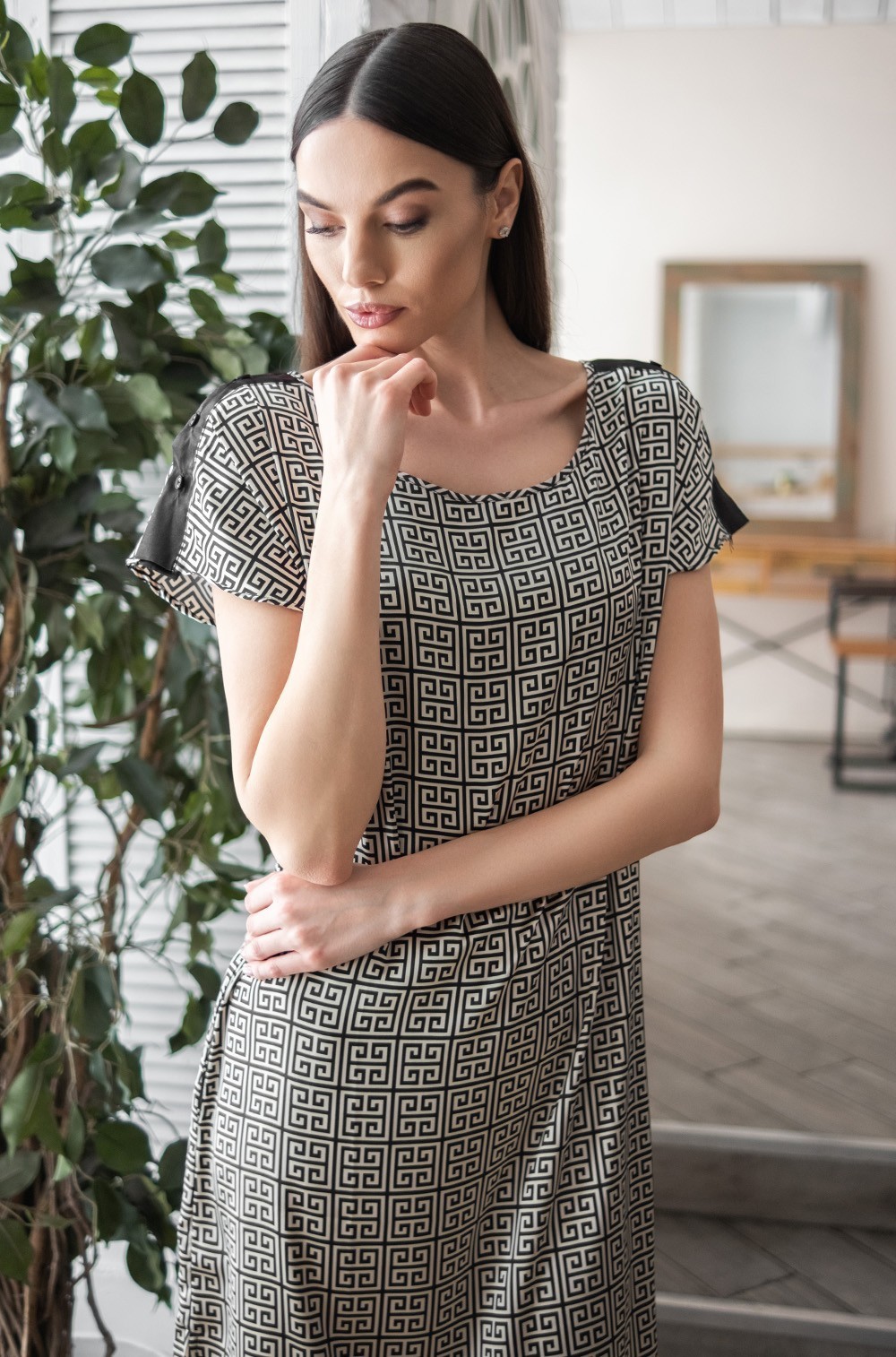 Тип Туника короткая Цвет Черный Модель Туника с коротким рукавом Материал Смесовый шёлк -