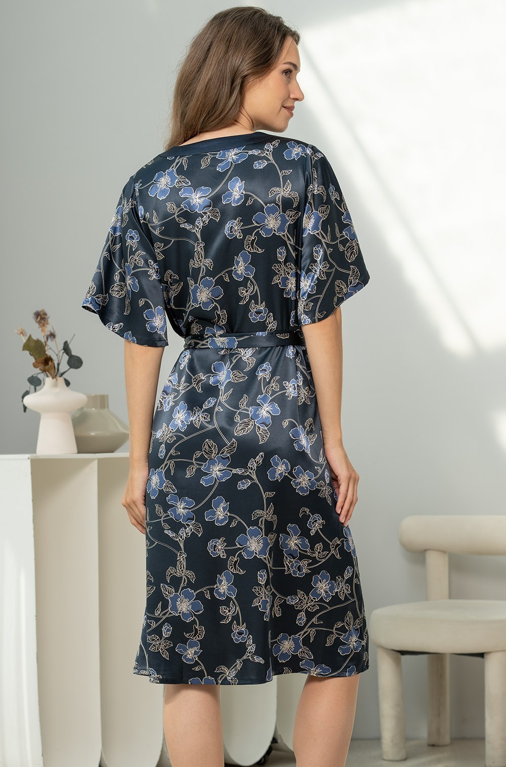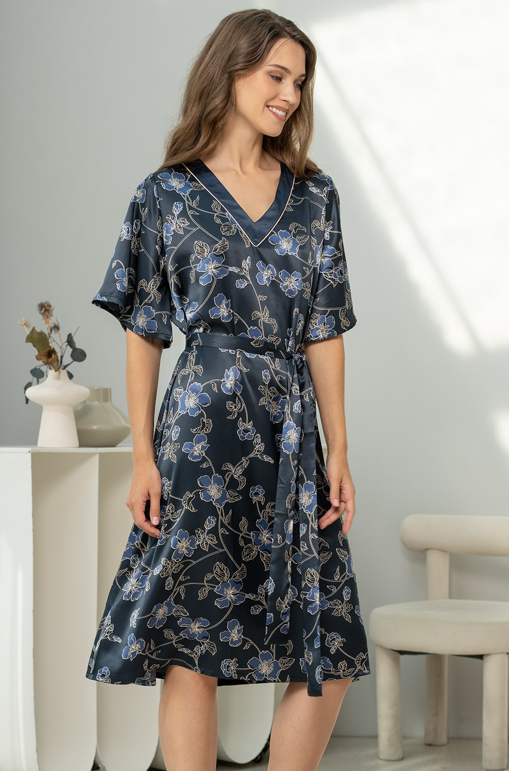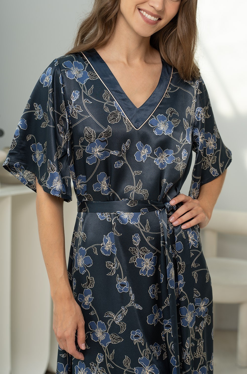 Roxolana 4375. Длинное домашнее платье-туника Mia-Amore с V-образным вырезом, на поясе, декорированное кантом, выполнено из принтованного шёлка.