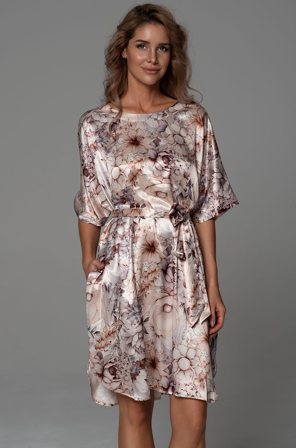 Модель выполнена из принтованного смесового шёлка, который объединяет лучшие свойства натуральных и современных волокон: