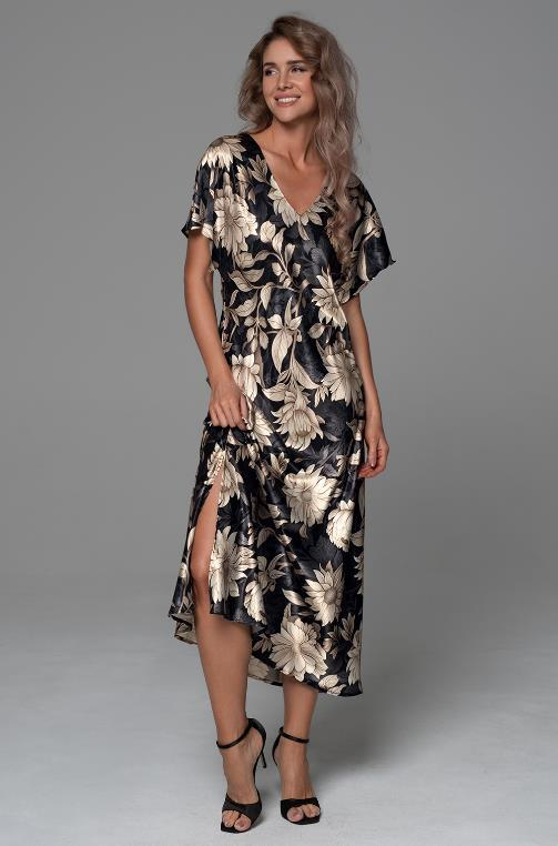 -Эстетическая привлекательность: принт и благородный блеск шёлка делают платье заметным и стильным.