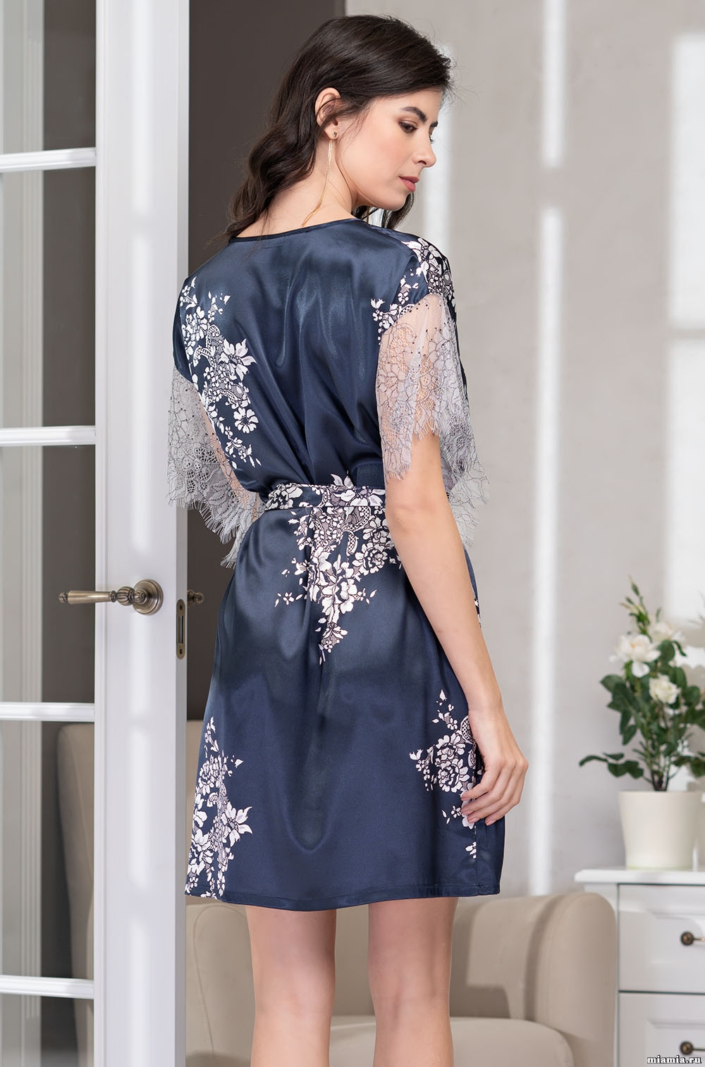 Шёлковая туника домашняя короткая с кружевом 3574 Александрия Mia-Amore имеется в размерах: XS. S/M. L/XL. 2XL/3XL