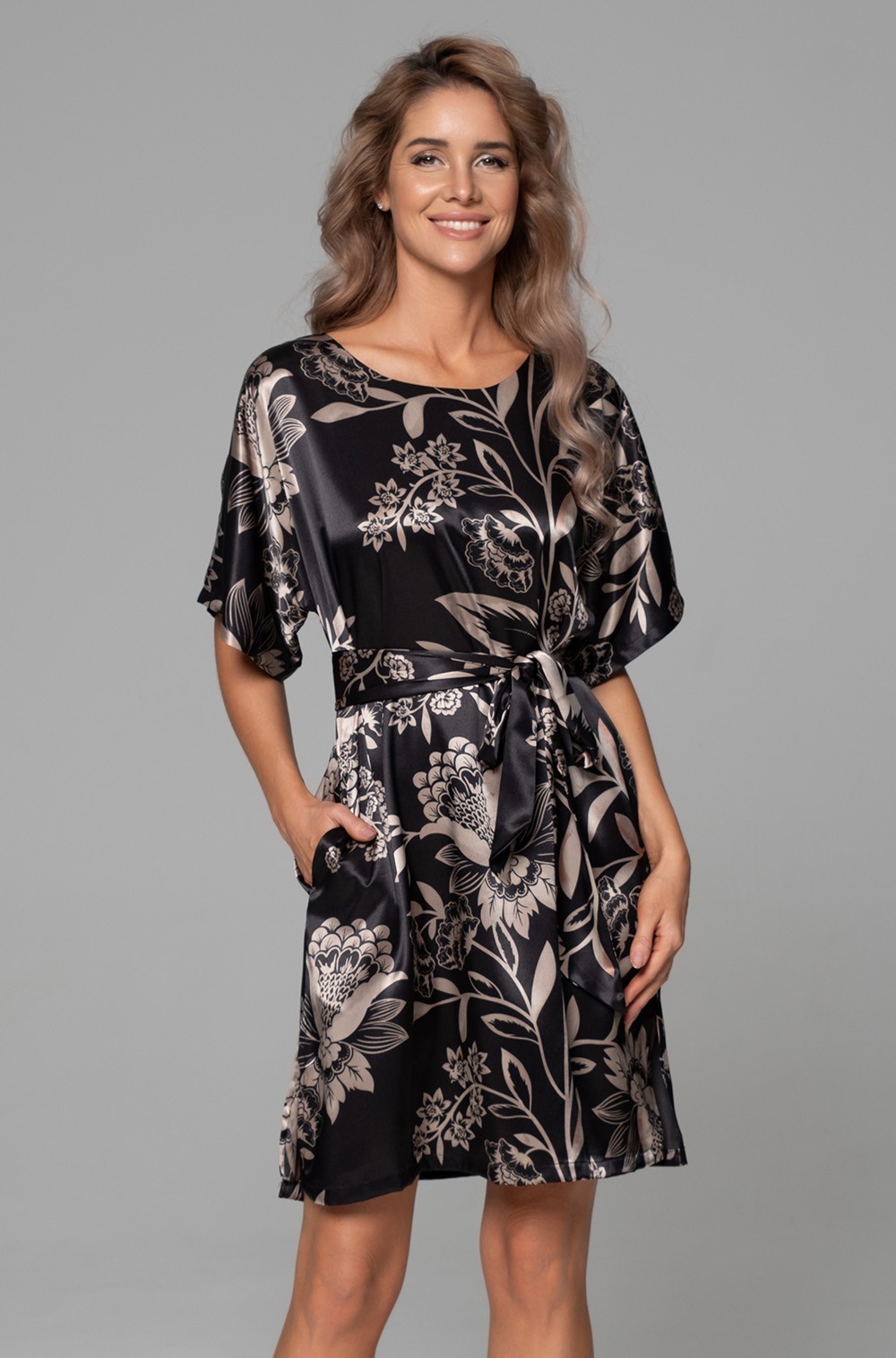 Шёлковое платье-туника домашнее ниже колен Ninelle латте 4127 Mia-Amore