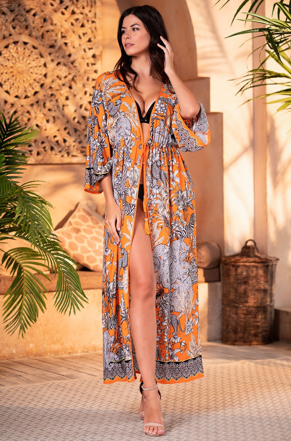 Пляжная туника длинная распашная на завязках Мадагаскар 1799 Mia-Amore