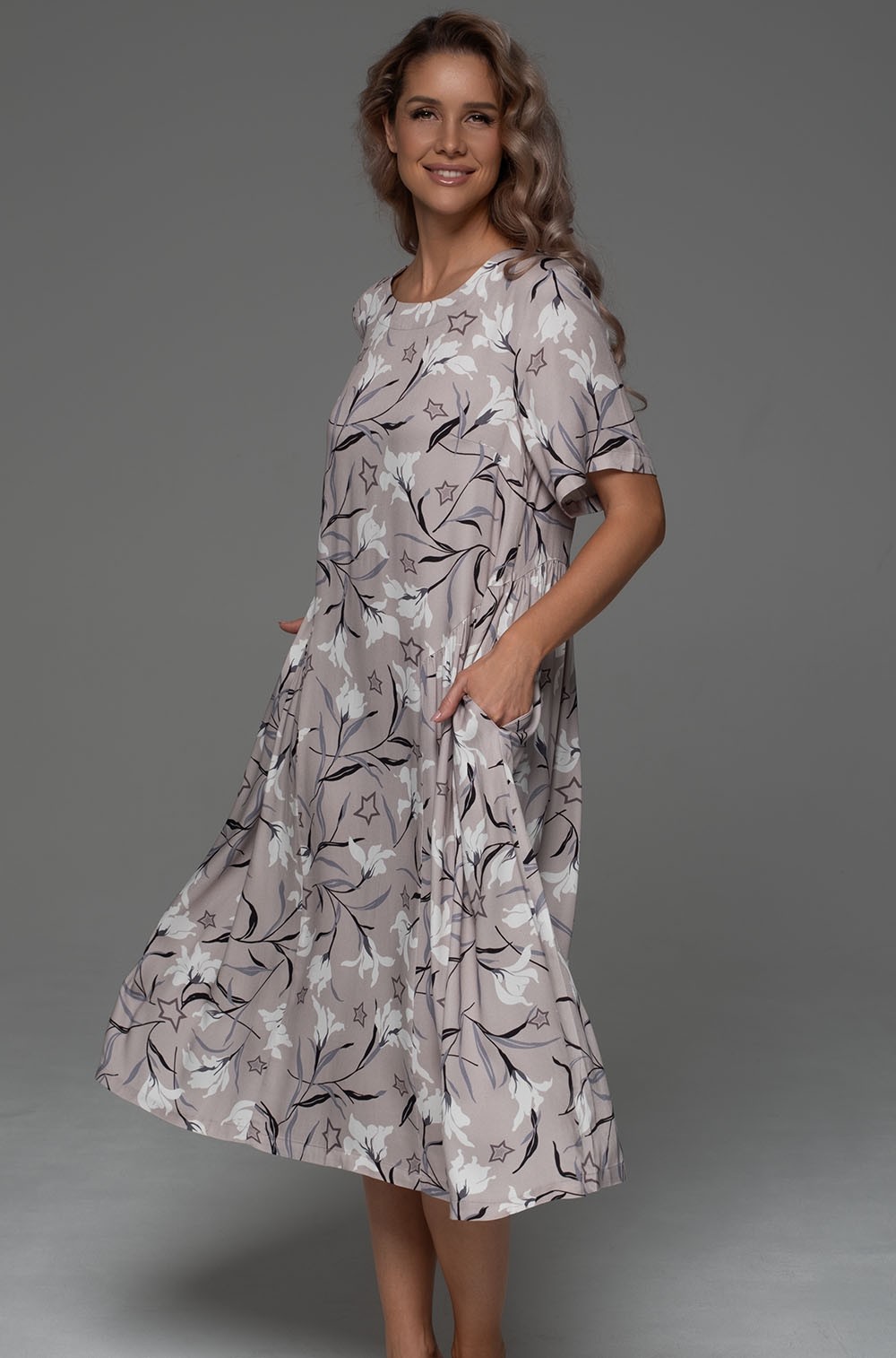 Домашнее платье Maila 5568 от Mia-Amore. Изысканный комфорт для вашего дома Элегантность и удобство воплотились в домашнем платье Maila 5568 от известного бренда Mia-Amore. Этот восхитительный наряд создан для тех, кто ценит комфорт и стиль даже в домашней обстановке. Изящный дизайн платья привлекает внимание своим свободным силуэтом и круглой горловиной. Особую женственность модели придаёт элегантный подрез по талии, от которого нижняя часть платья собирается в нежные складки, создавая неповторимый образ.