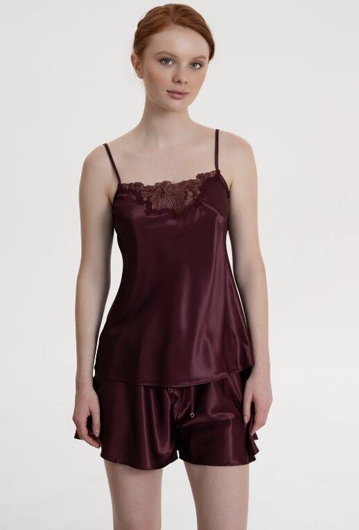 -Пижама с шортами из смесового шёлка винный Лилироуз 4597 Mia-Amore