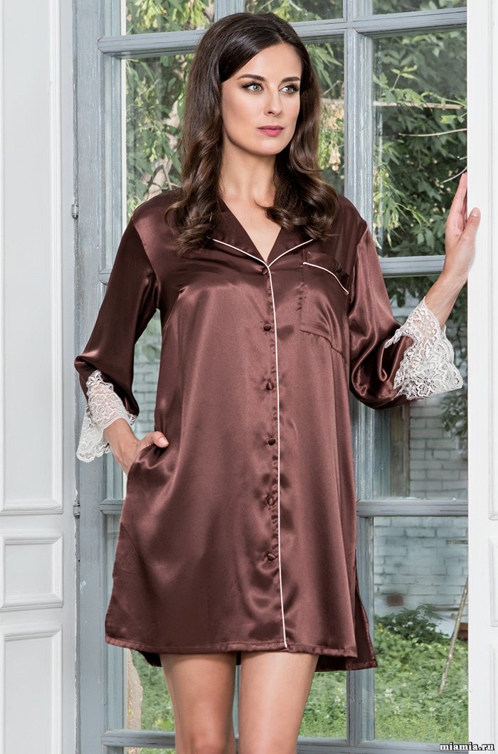 Шёлковый халат женский на пуговицах Мэрилин шоколад 3107 Mia Amore