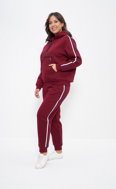 Спортивный костюм с начёсом женский худи со штанами 1168 бордовый Cleo