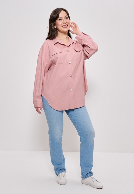 -Рубашка женская из льняной ткани большие размеры 1406 Cleo ч/роза