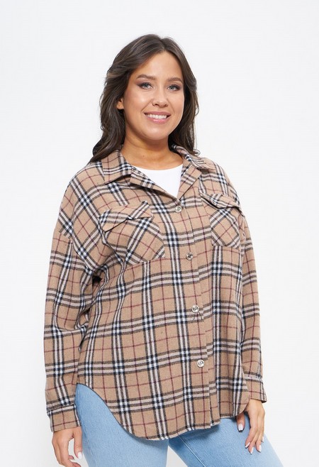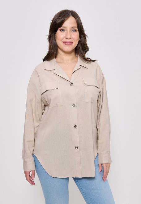 Рубашка женская из льняной ткани большие размеры 1406 Cleo бежевый