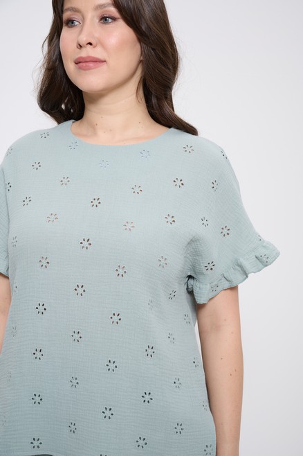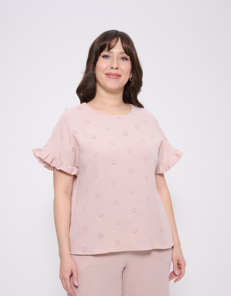 Топ летний женский из жатой вискозы с ришелье большие размеры ч/роза 1424 Cleo