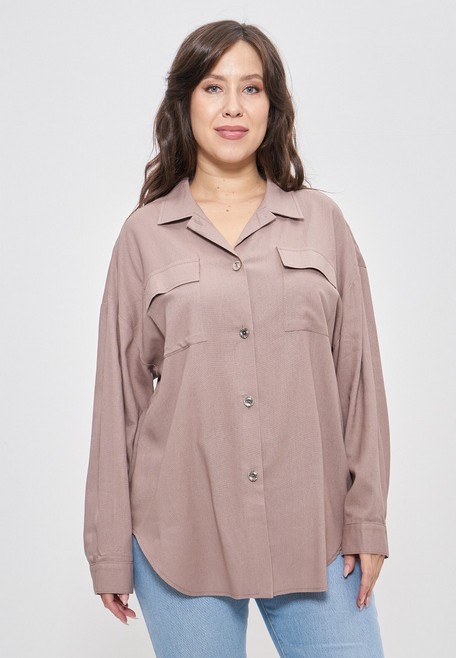 Рубашка женская из льняной ткани большие размеры 1406 Cleo кофейный