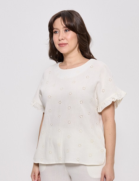 Топ летний женский из жатой вискозы с ришелье большие размеры беж 1424 Cleo
