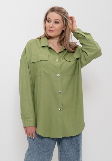 Рубашка женская из льняной ткани 1406 Cleo т/оливковый