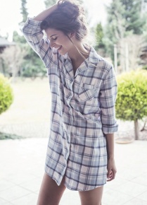 Очень удобны халаты на пуговицах и молнии. Халаты такого типа не будут распахиваться. Рубашечного типа халат можно сочетать с лосинами и гольфами.